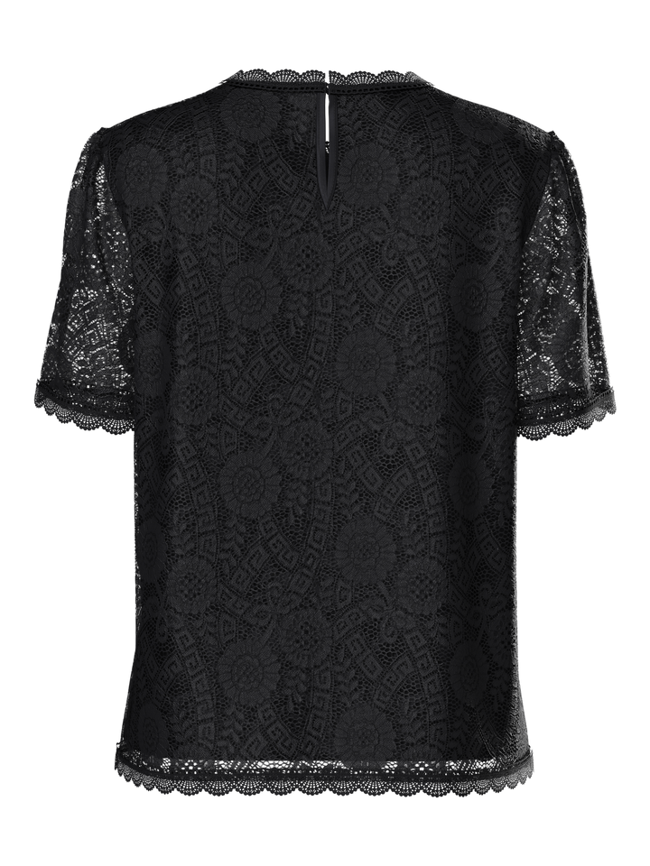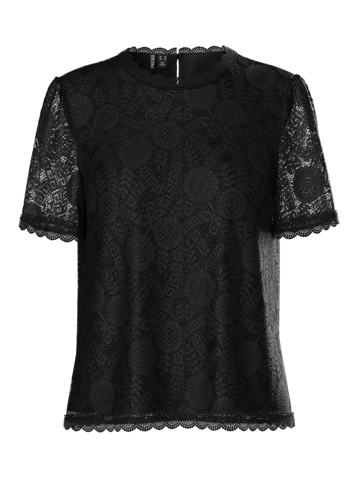 Tämä lyhythihainen musta pitsipusero tuo asuusi välittömästi elegantin ja huolitellun ilmeen. Kevyt ja kauniisti laskeutuva pitsimateriaali, miellyttävä vuori sekä pelkistetty O-pääntie tekevät puserosta täydellisen valinnan niin arkeen kuin siistimpään pukeutumiseen. Regular fit -mitoitus tarjoaa rennon mutta ryhdikkään istuvuuden, joka toimii monissa eri yhdistelmissä.