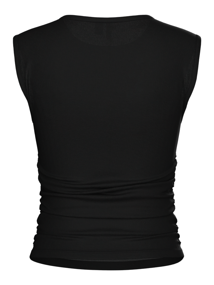 Tämä hihaton slim fit -toppi on täydellinen perusvaate ympärivuotiseen käyttöön. Pehmeä ja joustava jersey-materiaali tuntuu miellyttävältä ihoa vasten, ja edessä oleva moderni rypytys viimeistelee lookin trendikkäästi. Yhdistä farkkujen, bleiserin tai rentojen housujen kanssa – monikäyttöinen toppi toimii arjessa, töissä ja vapaa-ajalla.