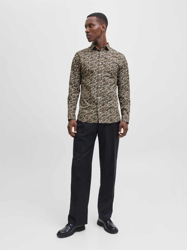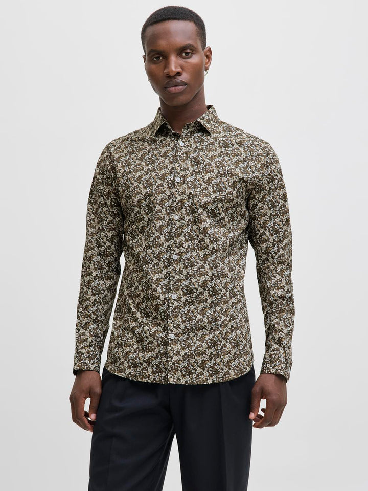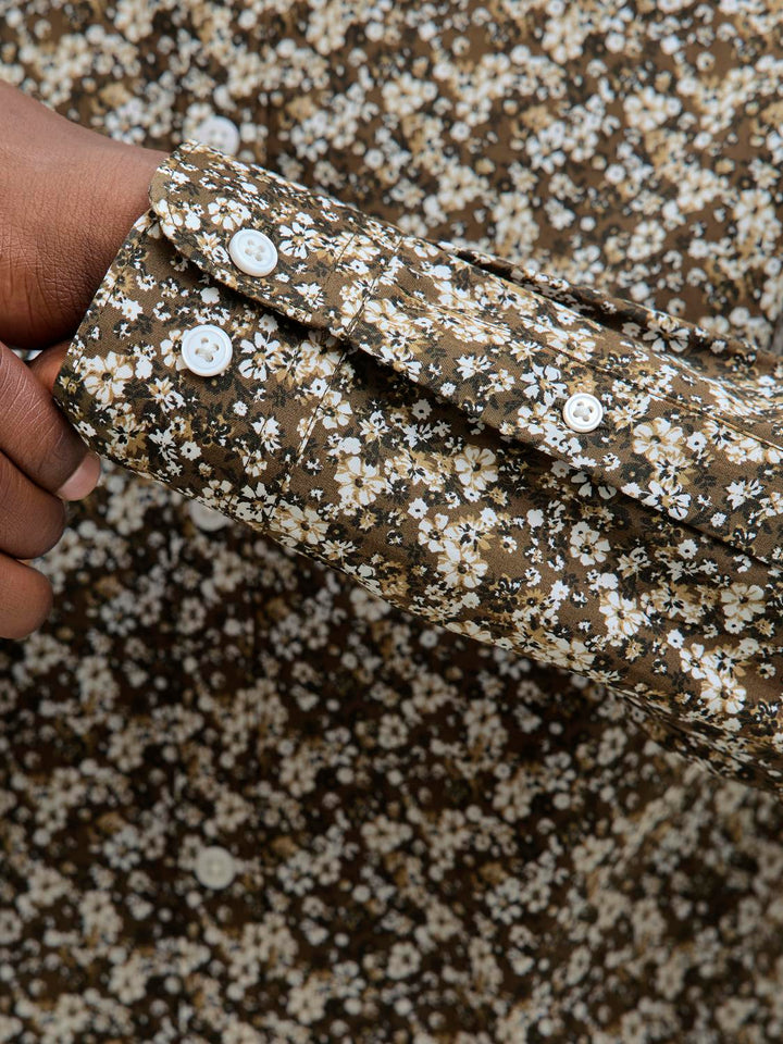 Tämä moderni kukkakuosinen kauluspaita tuo asuusi erottuvaa tyylikkyyttä. Vahvasta popliinista valmistettu paita istuu kevyesti vartalolle, ja sen hienovarainen kiilto tekee siitä täydellisen valinnan niin juhlaan, toimistolle kuin rennompaan smart casual -tyyliin. Joustava puuvillasekoite takaa mukavuuden koko päiväksi.