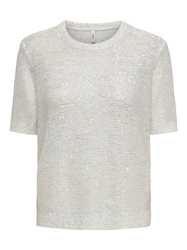 Tämä ONLY Onlabby paljettineule on täydellinen valinta, kun haluat yhdistää mukavuuden ja juhlavuutta hehkuvan tyylin. Lyhythihainen neulos on koristeltu kauttaaltaan hohtavilla paljeteilla, jotka heijastavat valoa kauniisti. Kevyt ja joustava neulos tekee paidasta miellyttävän käyttää kaikissa vuodenajoissa.