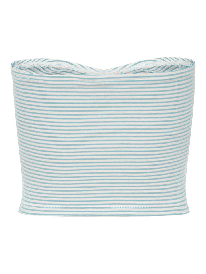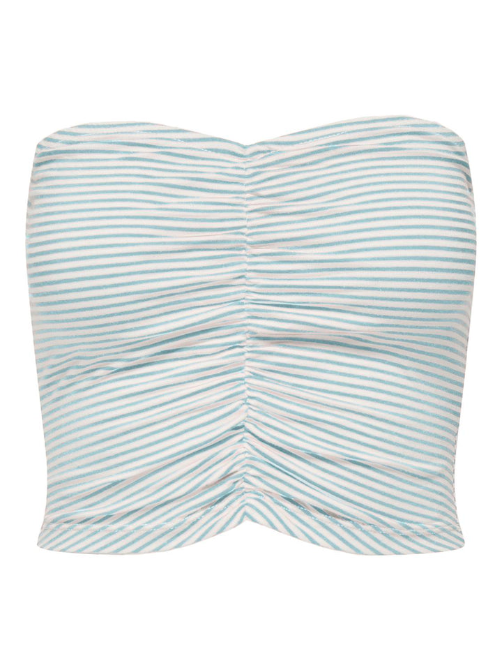 Täydennä kesävaatekaappiasi tällä raikkaalla, raidallisella tuubitopilla. Kevyt ja miellyttävä eko-puuvilla yhdistettynä elastaaniin takaa hyvän istuvuuden ja hengittävyyden kuumina päivinä. Edessä oleva rypytys tuo tyyliin kauniin yksityiskohdan, ja olkaimettomana tämä toppi toimii täydellisesti niin yksinään kuin muiden vaatteiden alla.