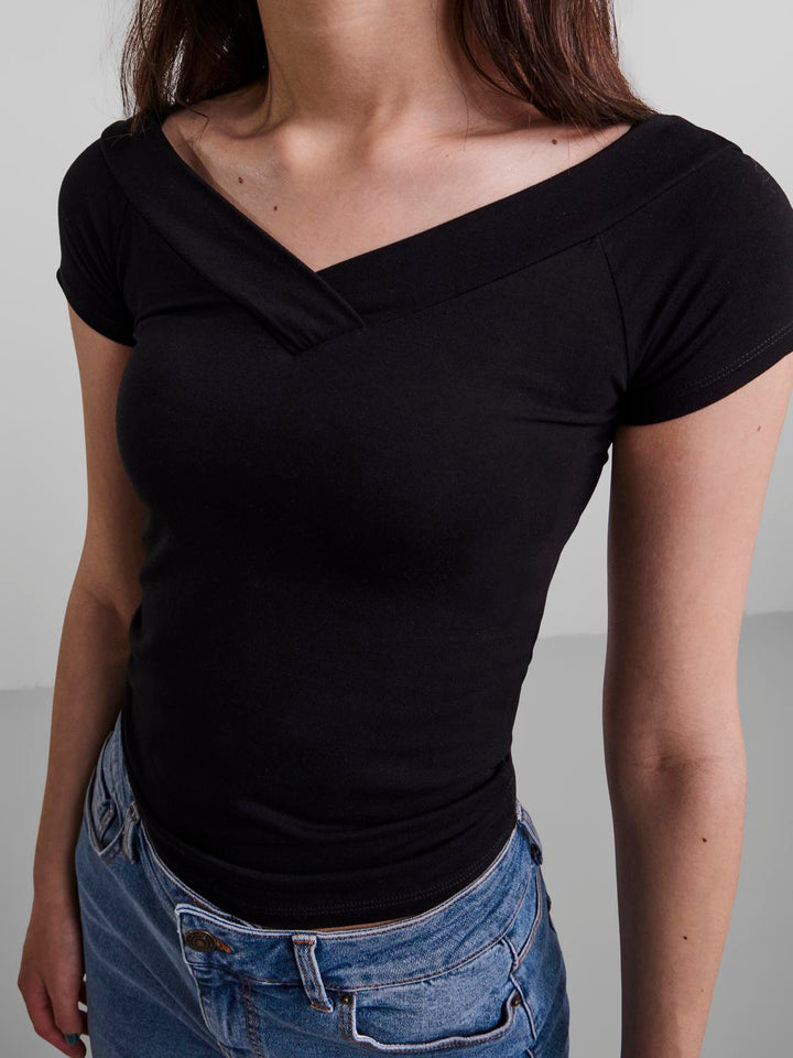Pieces pcmaliva ss off shoulder v-neck top – naisellinen ja laskeutuva t-paita