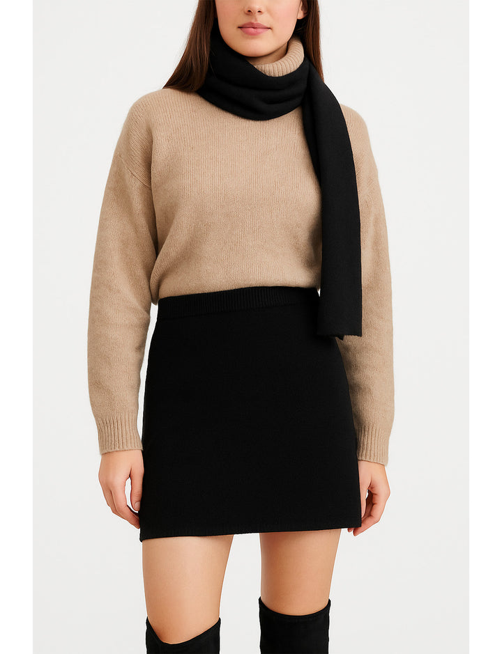 Tämä pehmeä neulehame tuo lämpöä ja tyyliä viileämpiin päiviin. Yksinkertainen ja ajaton design tekee siitä helposti yhdisteltävän eri yläosien kanssa. Hameessa on korkea vyötärö ja joustava vyötärönauha, joka takaa mukavan istuvuuden. Neulospinta on sileä ja pehmeä, tuoden asuusi rentoa eleganssia.