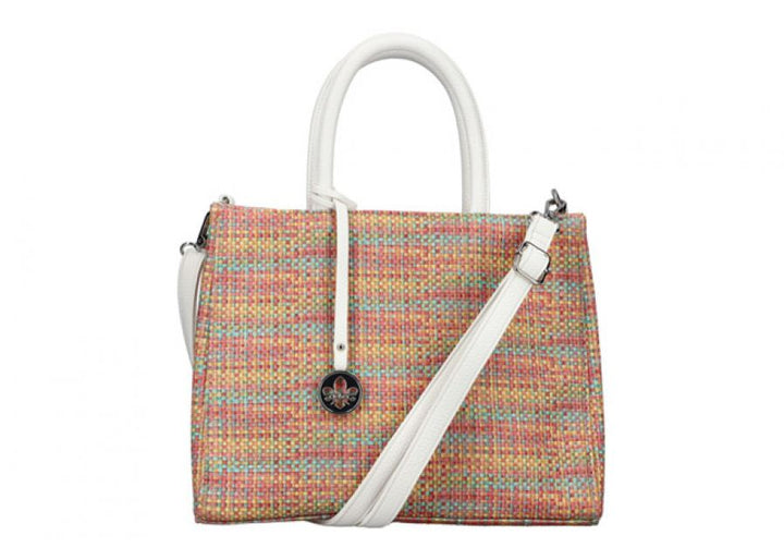 Värit ovat kaikki mitä tarvitsemme! Tämä monivärinen Riekerin ostoslaukku ei ainoastaan tee vaikutusta huomiota herättävällä ulkonäöllään värikkäässä kudotussa lookissa, vaan myös sen tilavuudella. Päätasku voidaan sulkea turvallisesti vetoketjulla. Tämän päätaskun sisällä on sisätasku ilman suljinta, joka on ihanteellinen avainten, matkapuhelimen tai muiden tärkeiden tavaroiden säilyttämiseen. Valkoinen olkahihna ei ole vain säädettävä, vaan myös irrotettavissa. Värikkäät värinät!