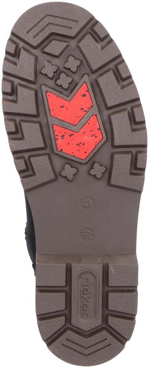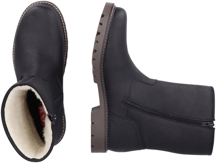 Muoti kohtaa toiminnallisuuden. Et tule pettymään näihin kuparinruskeisiin nilkkureihin, jotka on valmistettu Riekerin mokkanahasta. Sivuvetoketju tekee kengän pukemisesta ja riisumisesta helppoa. Profiilipohja on kestävä ja tarjoaa hyvän pidon kaikissa olosuhteissa. Lisäksi irrotettava sisäpohjallinen on erityisen pehmeä. Mukavuutta lisää G 1/2 -lestin tarjoama lisätila kengässä. RiekerTEX-teknologian ansiosta märät päivät eivät tuota ongelmia, ja Fiber-Grip-pohjan ansiosta jopa jäisillä pinnoilla liikkuminen on pitävämpää. Kodikas ja erittäin lämmin neitsyvilla pitää jalat lämpiminä koko päivän ajan. 100% suosikkikenkäpotentiaali!