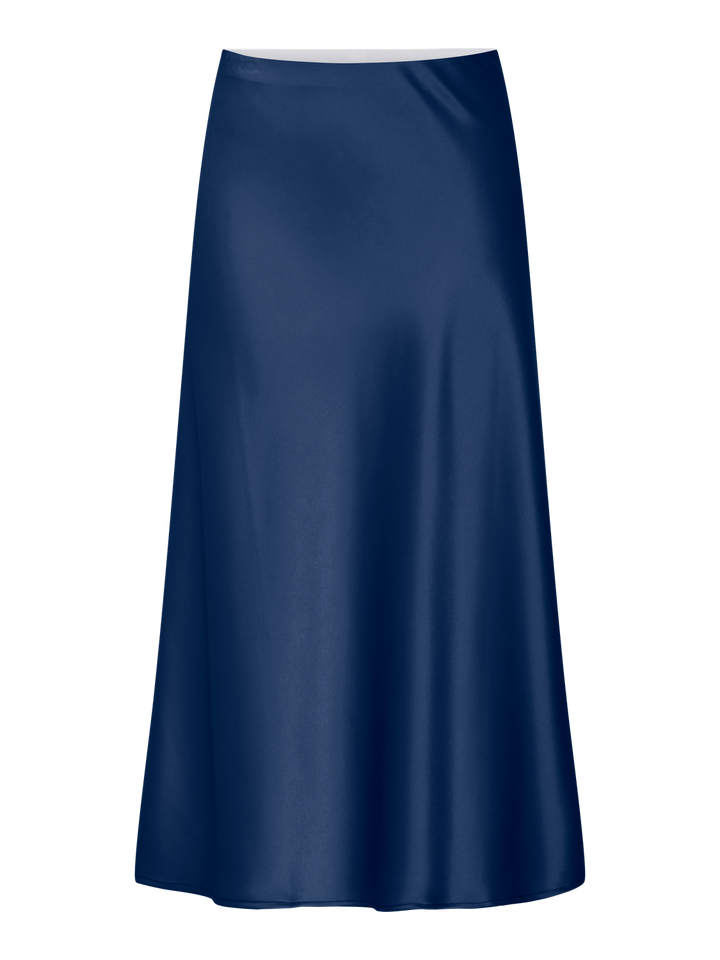 Ylellinen satiinimateriaali tuo asuun eleganttia kiiltoa ja luo pehmeästi liikkuvan silhuetin. Joustava vyötärönauha takaa mukavan istuvuuden ja tekee hameesta helpon yhdistää sekä arjen että juhlan kokonaisuuksiin.